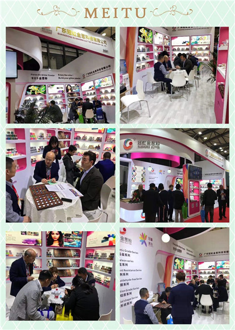 2019年11月18-20號在上海舉行,此次展會非常成功,攜帶化妝品級,耐溶劑等多種金蔥粉趕赴上海參展。得到世界各地人士的認可和支持。